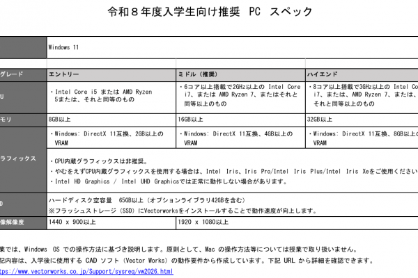 令和8年度入学者向け推奨ノートPCに関して